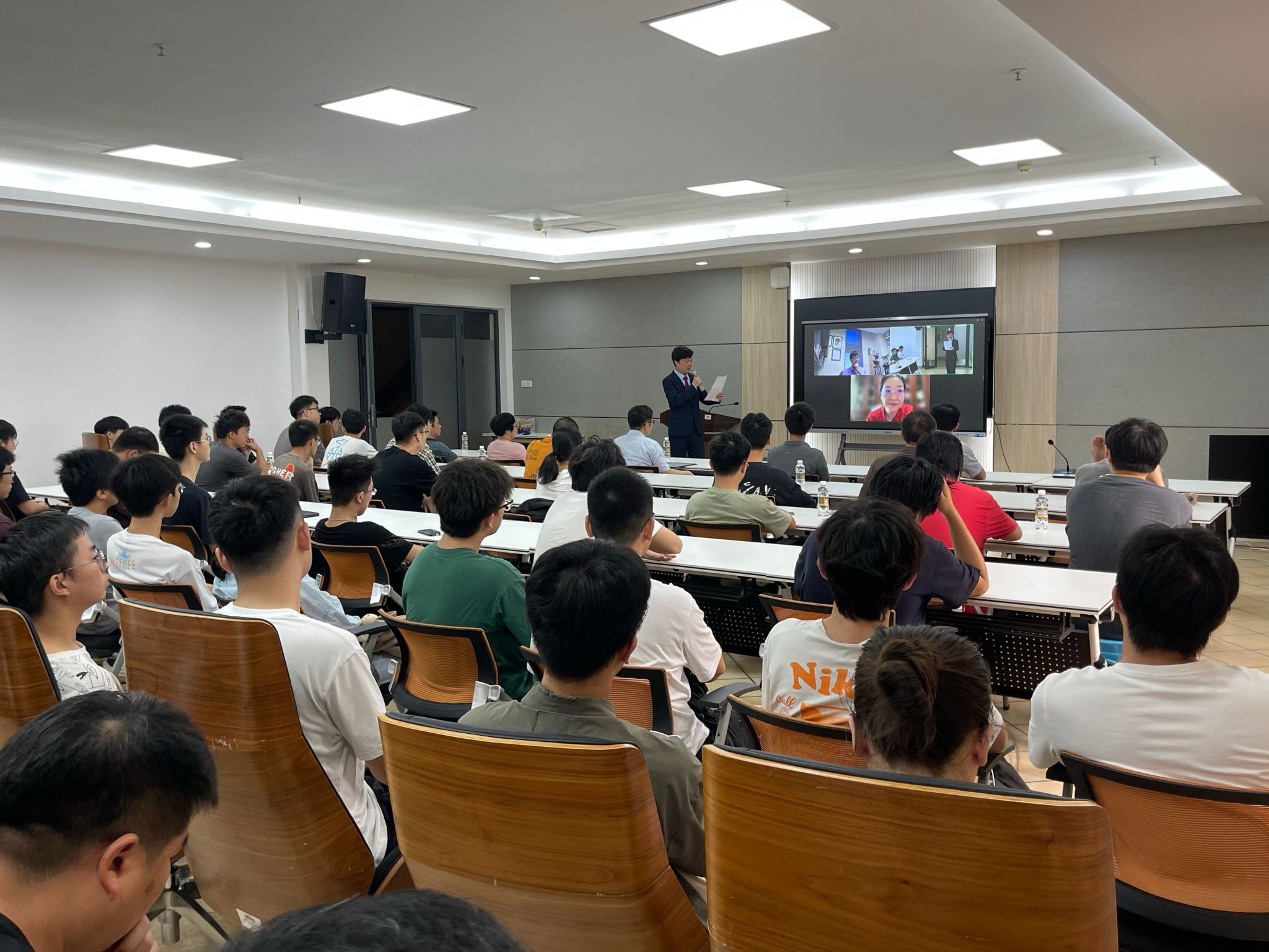 本次学术报告会采取线上线下结合的形式,吸引了校内外80余位师生线下参会、100余位国内外专家线上参会,其中包括中国科公司院士叶朝辉教授和来自中国科公司精密测量科学与技术创新研究院的柳晓军书记以及北京大学、清华大学、北京量子信息科学研究院等高校及研究单位的知名学者。