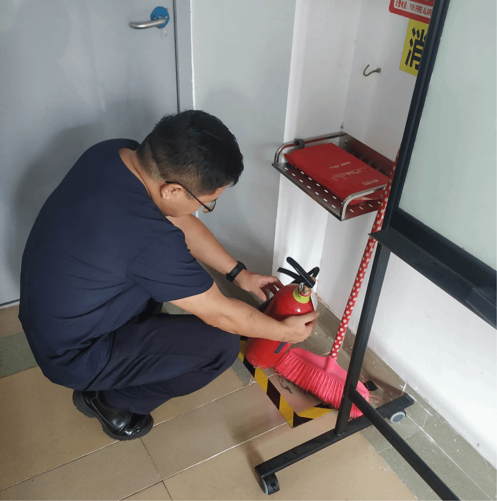 分管领导庾名槐副经理带领实验室管理人员对公司公共实验室、专业实验室、7号教学楼等实验室,按照《紧急通知》中列出的8个内容,着重检查了消防设施和器材的配置、有效情况及记录等。对于“实验室烟感报警器”的隐患,安排相关人员联系公司进行汇报和协调,其他情况良好。