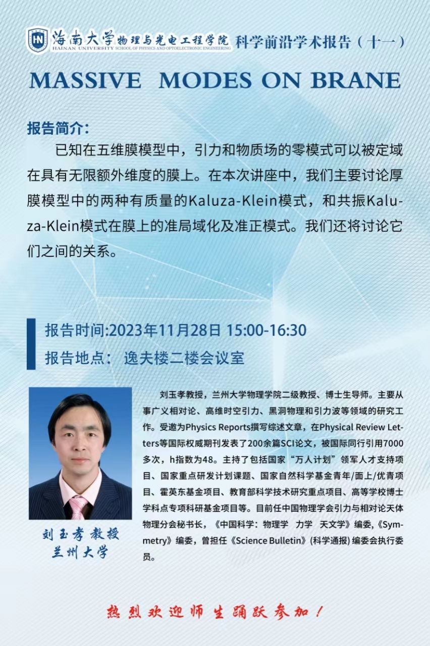 科学前沿学术报告(十一):MASSIVE MODES ON BRANE