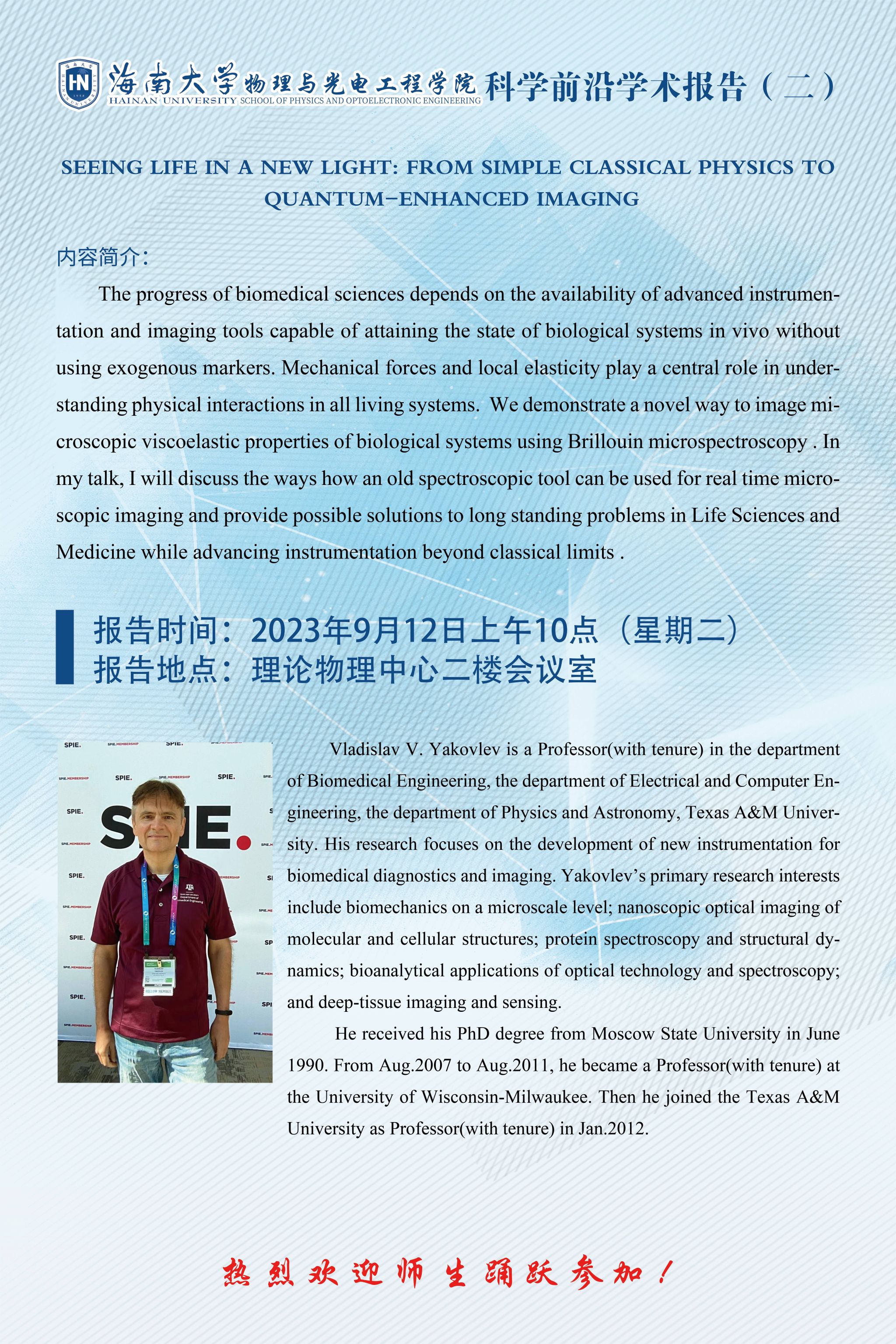 科学前沿学术报告(二):SEEING LIFE IN A NEW LIGHT:FROM SIMPLE CLASSICAL PHYSICS TO QUANTUM-ENHANCED IMAGING