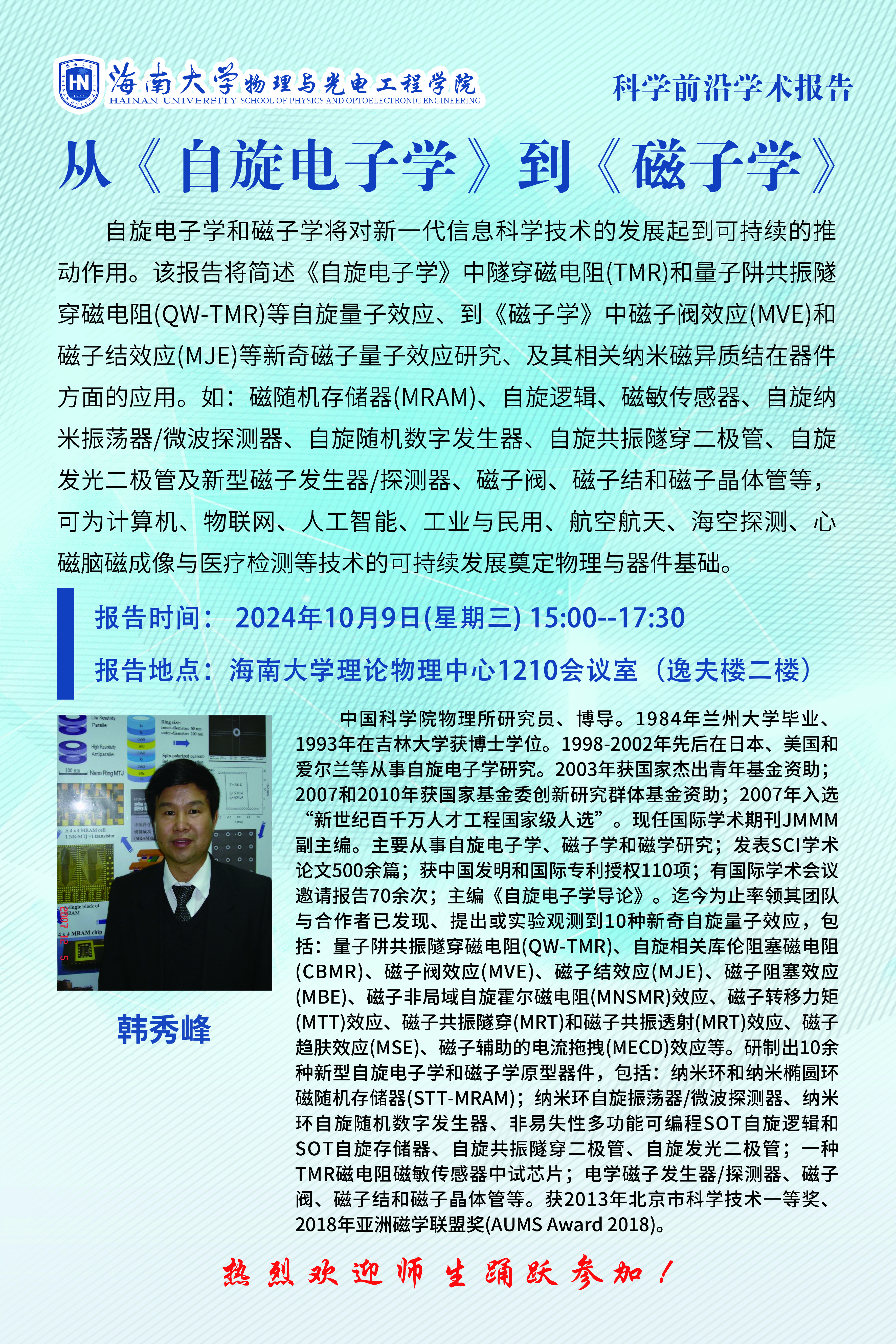 科学前沿学术报告(三十二):从《自旋电子学》到《磁子学》