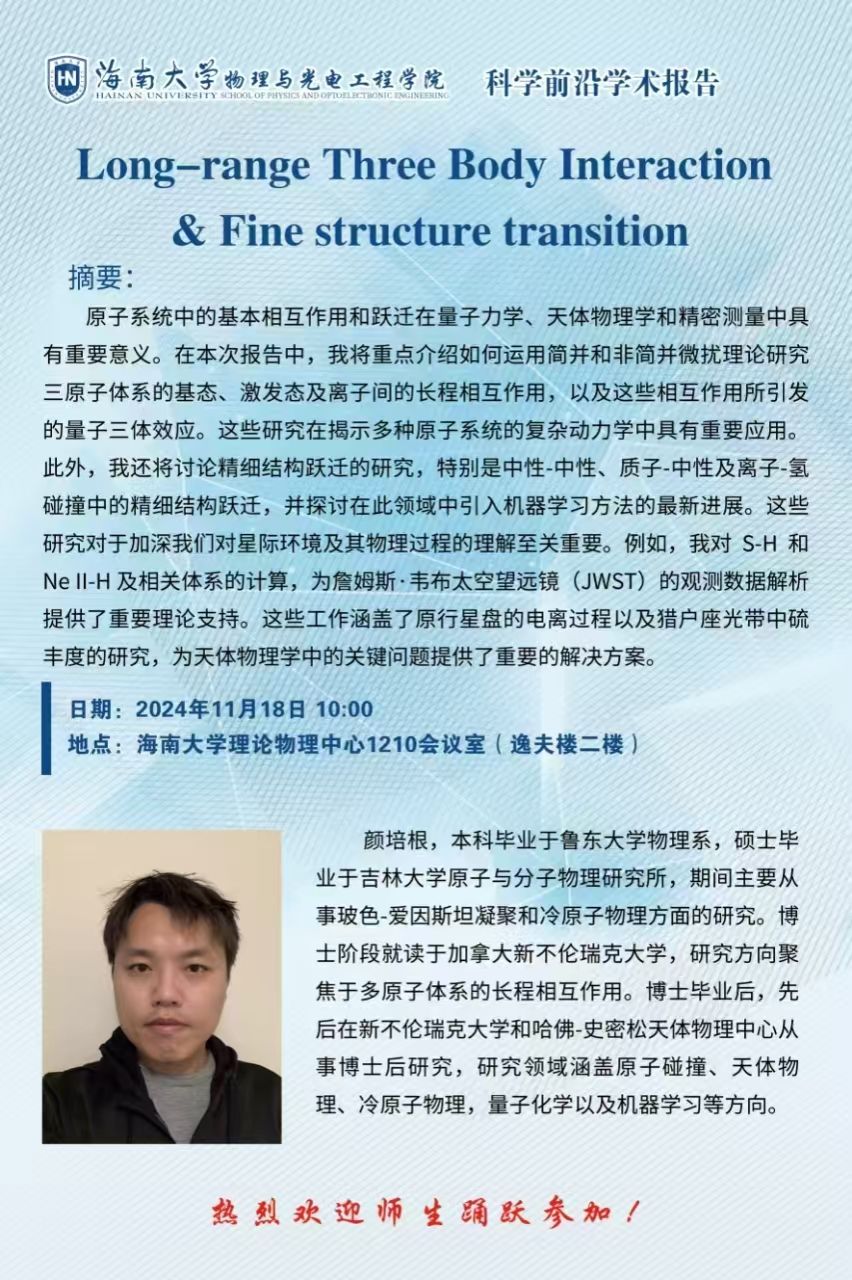 科学前沿学术报告(三十六):Long-range Three Body Interaction & Fine structure transition