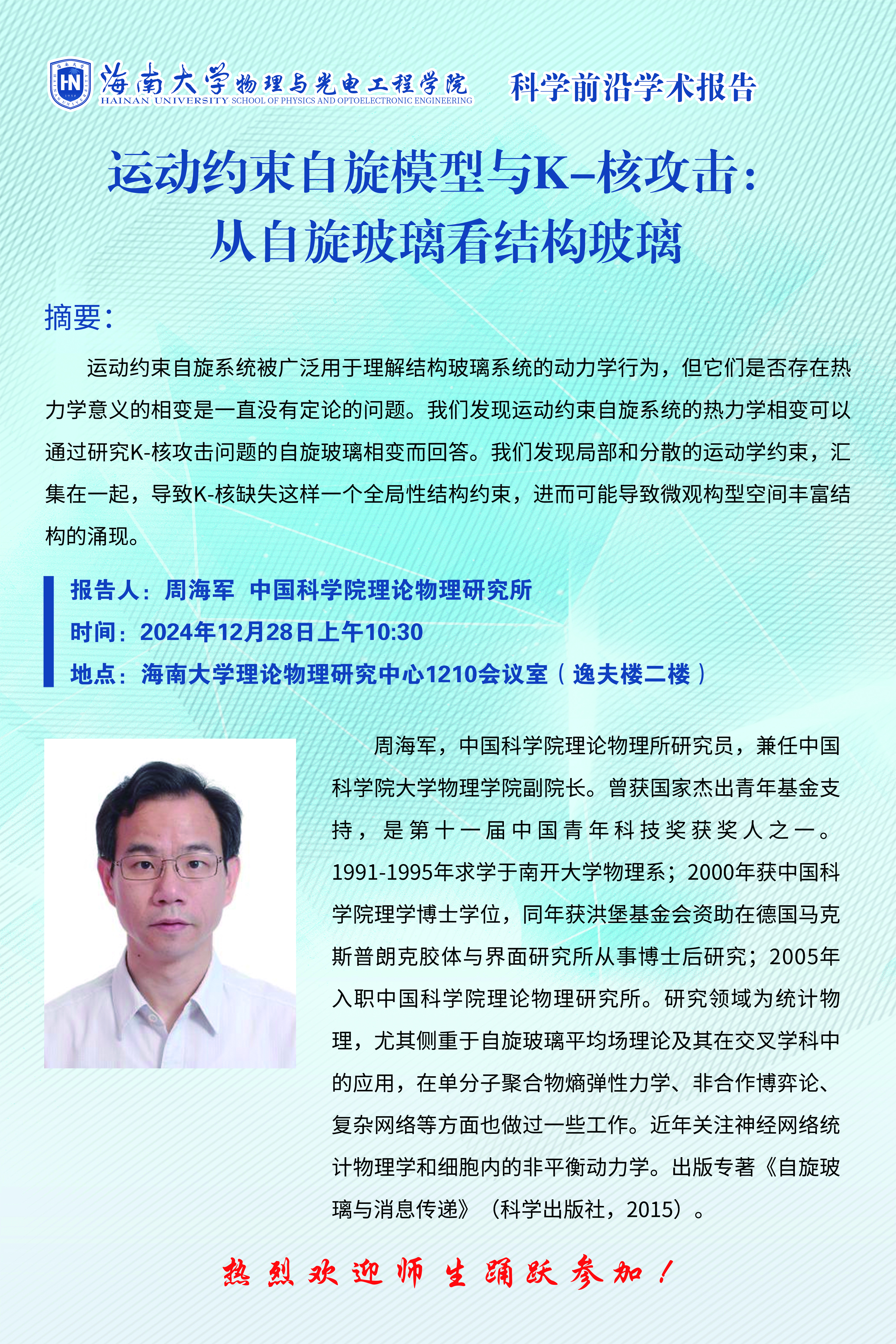 科学前沿学术报告(四十三):运动约束自旋模型与K-核攻击:从自旋玻璃看结构玻璃