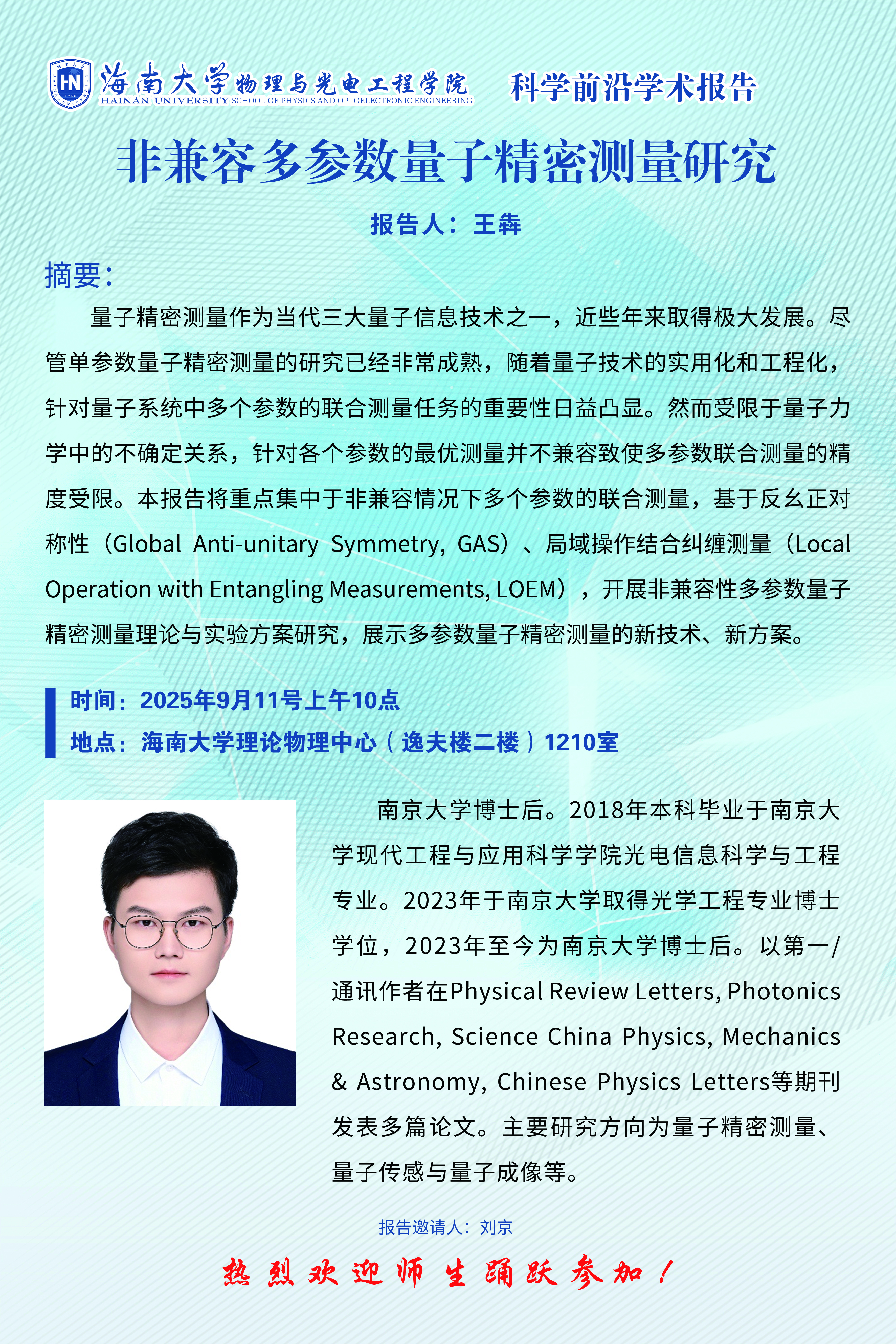 科学前沿学术报告(六十一):非兼容多参数量子精密测量研究