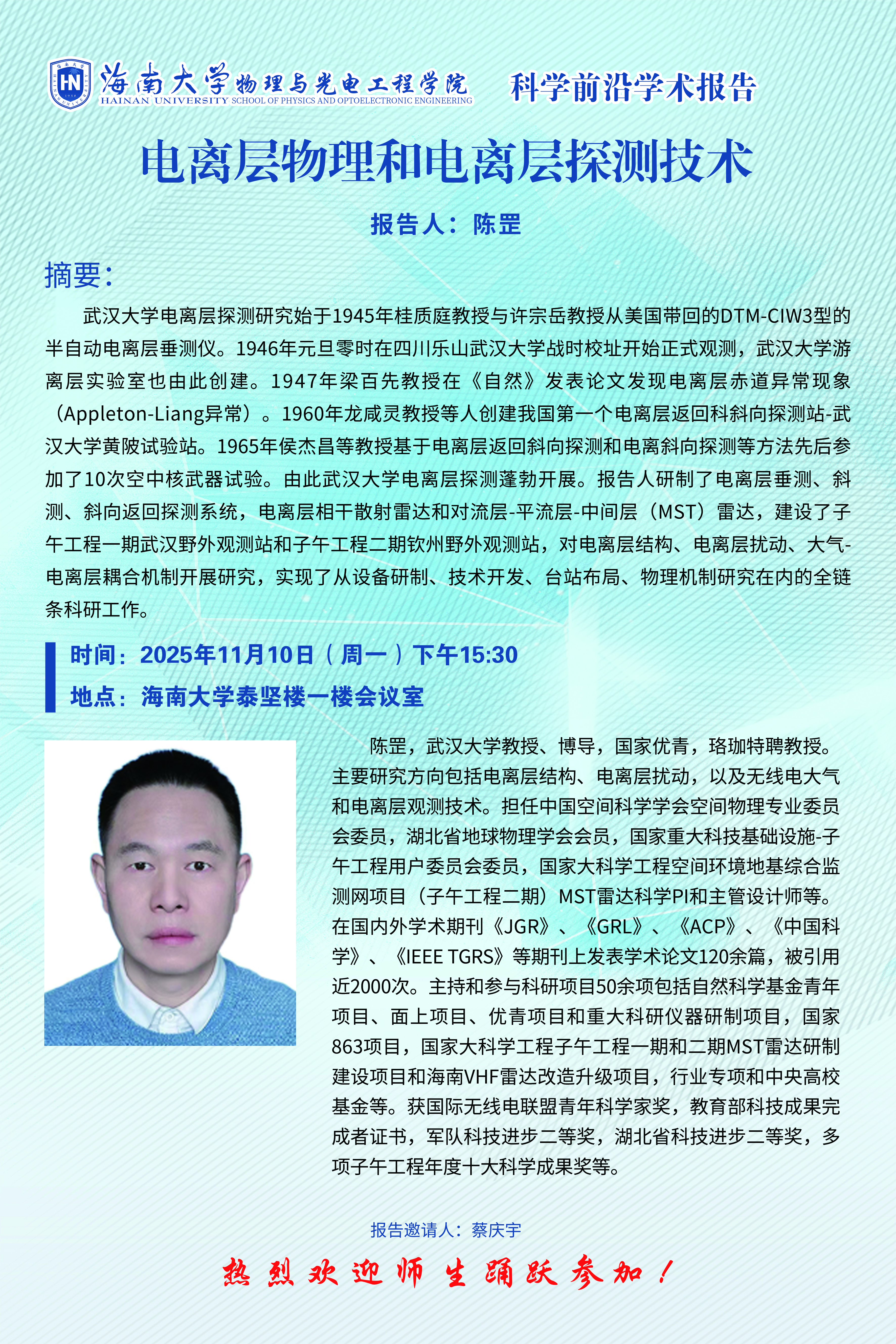 科学前沿学术报告(六十七):电离层物理和电离层探测技术